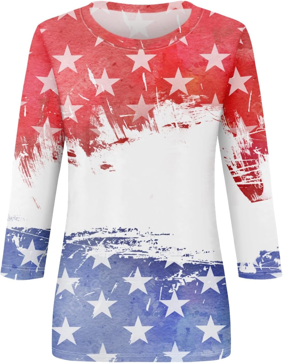 2024 Summer Fashion 3/4 Sleeve 4th of July Shirts For Women