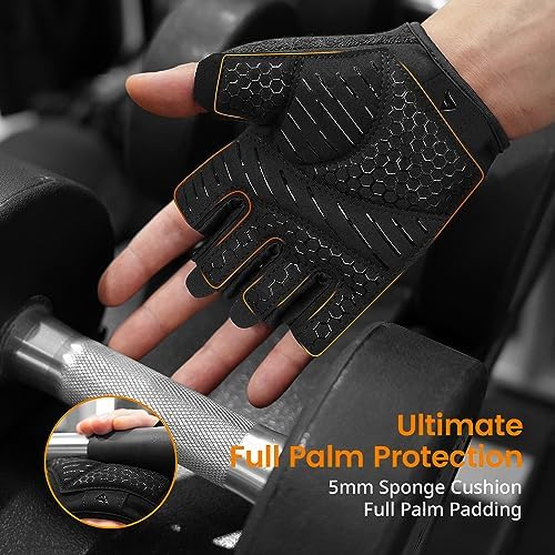 Unmatched Durability & Longevity: We pay attention to the durability of the workout gloves, the thumb section has been reinforced multiple times to effectively resist tearing. The palm part is designed with double stitching, which solves the problem that the cushion is easy to fall off. The high-density hemming process of the gloves ensures exquisite workmanship, making the weight lifting gloves more durable.