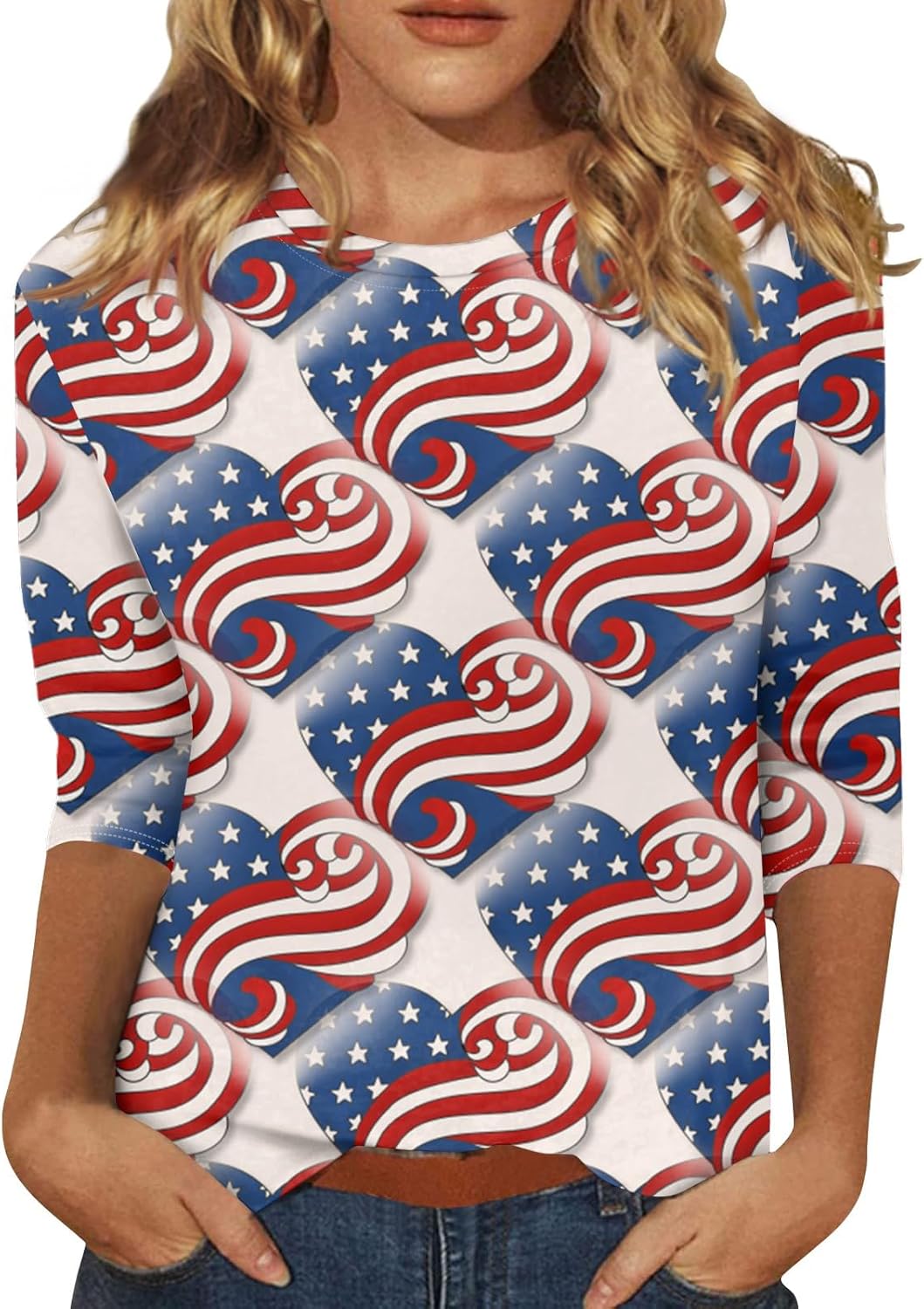 2024 Summer Fashion 3/4 Sleeve 4th of July Shirts For Women