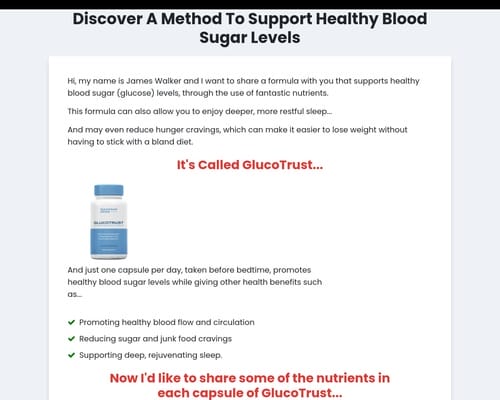 Hi, my name is James Walker and I want to share a formula with you that supports healthy blood sugar (glucose) levels, through the use of fantastic nutrients.