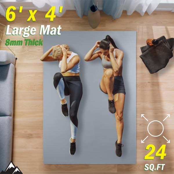 WIDE YOGA MAT – This 6-foot-long by 4-foot-wide gym mat gives you ample extra space for your favorite home workouts. The work out mat is perfect for 2 people exercising together, or you can simply enjoy this spacious XL yoga mat solo.