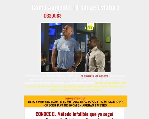 Lo que estoy a punto de revelarte … (es algo que no lo vas a encontrar en ningún otro lado)…es la diferencia entre seguir siendo la burla de tus amigos o compañeros que te ponen apodos, como chaparrito, el enano, el bajito etc…y la Satisfacción Desbordante que se siente al saber que Si es Posible llegar a Crecer hasta 10 cm si necesidad de recurrir a dolorosas cirugías, sin importar la edad que tengas o si eres hombre o mujer