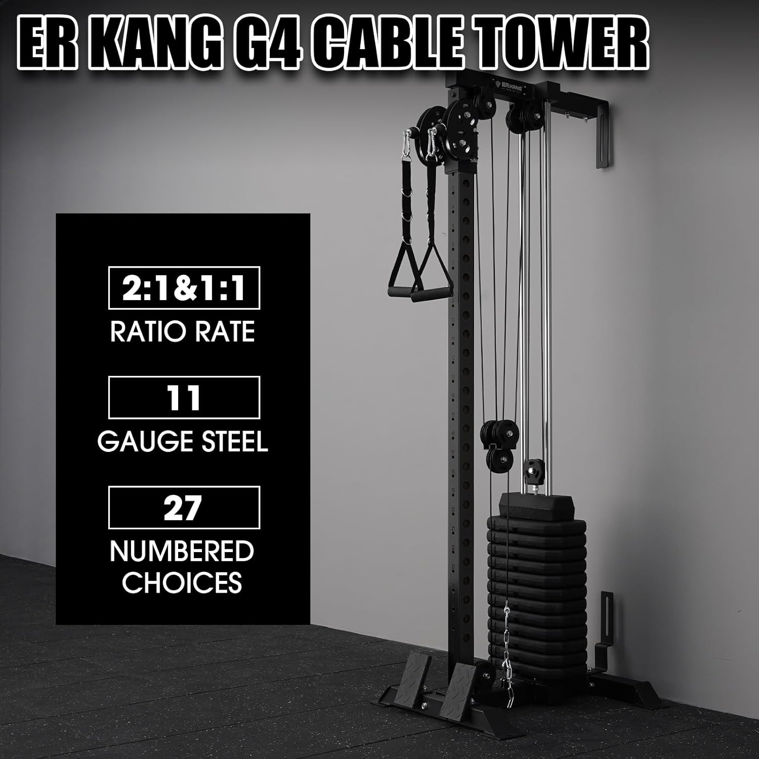 Selectorized weight stack: high-end cable tower is equipped weight stack pulley system as opposed to a plate-loaded system. 1:1&2:1 ratio and 215lb weight. Lets you very easily perform drop sets or supersets with virtually no rest between sets. It also means less moving around and handling weights between your sets. It makes you more efficient so you can focus more on actual training instead of preparing to train.