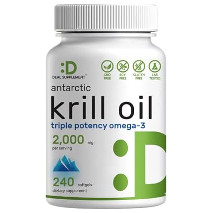 DEAL SUPPLEMENT Antarctic Krill Oil 2000mg Softgel | 240 Counts – No Fishytaste – Triple Potency Omega-3s, EPA 240mg, DHA 160mg, Astaxanthin 800mcg, & Phospholipids – No Mercury, Non-GMO, No Gluten
