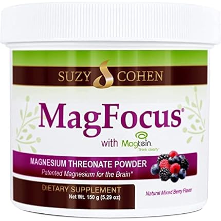 Suzy Cohen MagFocus Magnesium L-Threonate Powder with Magtein (Mixed Berry) Plus Magnesium Glycinate for Wellness, Focus, and Cognition – Gluten-Free, Non-GMO, Vegetarian (60 Servings)