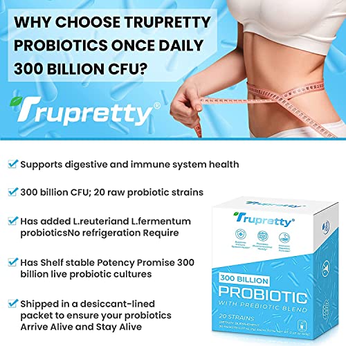 2-Year Shelf-Stable Potency Promise Live 300 Billion Probiotics: Probiotics are only effective if they are survive and colonize, 300 Billion live probiotics cultures, shipped in a desiccant-lined, shelf-stable packet. The advanced packet protects probiotics and prebiotic from heat, air, moisture,to ensure probiotics arrive alive and stay alive, maximize delivery to the intestine.