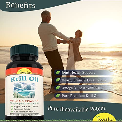 TRIPLE STRENGTH ANTARCTIC KRILL OIL | Phospholipids, EPA, DHA, with Astaxanthin – purity and source verified. You found the right omega supplement. Savvy folks know that the EPA and DHA in our krill oil may be higher in bioavailability than fish oil. iwalu gives you only the best – no fishy business.