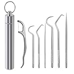 Features:Triangle toothpick: Used in between the teeth and Clean the residue at the dead corner of the root inside the tooth. Half-moon toothpick: Remove the residue between the teeth and Remove the calculus at the root of the tooth.One- character toothpick: Remove the surface of the teeth.Toothpick Holder: Come with a king ring and you can carry it anytime and used for easy storage of toothpick. Specification: Material: 304 stainless steel Color: Silver