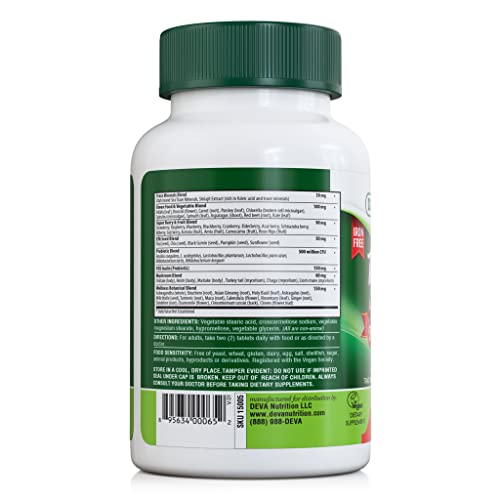 Looking for a convenient supplement to complement your vegan diet?Wellness starts with proper nutrition. But even with a careful choice of food, there may still be gaps in your diet, especially if you’re following the vegan way of life.You know how important it is to eat fruits, vegetables, greens, and herbs for their vitamins and minerals. But with your busy lifestyle, it can be hard to find time to prepare and consume large servings of these healthy foods every single day.Reinforce your diet with a meaningful blend of vitamins & nutrients with the Deva Tuba Prime Vegan Multivitamin.Our high-potency multi-nutrient formula provides your body with a comprehensive complex of vitamins and minerals, most of which cover 100% or more of their Recommended Daily Values. You get 24 vitamins and minerals plus 72 ionic trace minerals from the Utah ionic trace mineral powder and Shilajit.The formula features a Green Food & Vegetable Powder Blend which consists of alfalfa, broccoli, carrot, parsley, chlorella, spirulina, spinach, asparagus, red beet, and kale. Its Super Berry & Fruit Powder Blend contains strawberries, raspberries, blueberries, blackberries, cranberries, elderberries, acai, schisandra, bilberries, goji, acerola, amla, camu camu, and rose hips.This supplement contains Shiitake, Reishi, Maitake, Turkey tail, Chaga, and Lion’s mane mushroom extracts. You also get flax, chia, black cumin, pumpkin, and sunflower seeds, plus ginseng, eleuthero, ashwagandha, turmeric, milk thistle, rosemary, ginger, dandelion, six strains of probiotics, and the prebiotic Fructooligosaccharides (FOS).Here are more reasons to start taking our supplement:No preservativesCoated tabletsCertified by the Vegan SocietyPrioritize your daily wellness. Add the Deva Tuba Prime Vegan Multivitamin to your cart TODAY!