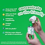 92% less water shipped per bottle of concentrate (compared to a 16 FL OZ hello adult mouthwash bottle).