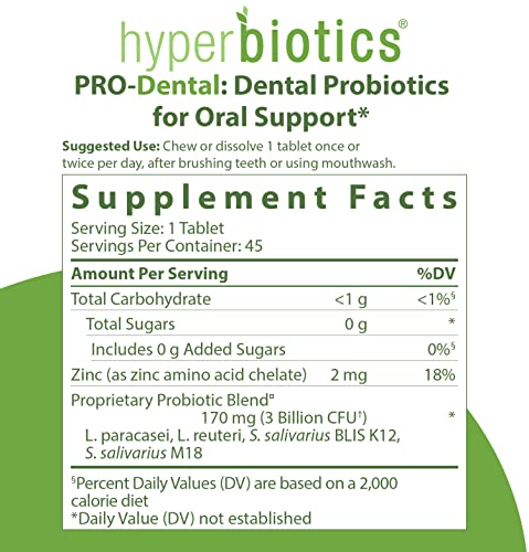 Ears, Nose, and Throat Probiotics For Oral Health: 3 Billion CFU in a chewable tablet with 4 targeted strains. When your oral microbiome is populated with strong probiotic colonies, you are equipped with natural defenses against common invaders. PRO-Dental is formulated with targeted probiotic strains to replenish the balance of good bacteria and may support oral and immune health.*