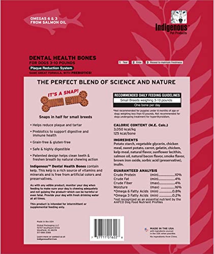 Inulin, which is a prebiotic that helps a dog’s digestion and prevents bloating. Kelp meal, which has been proven to remove plaque from a dog’s teeth. Indigenous Pet bones are grain-free and gluten-free, which makes them an excellent option for dogs with dietary restrictions. Salmon oil, which is a good source of omega-3 fatty acids, which are essential for a dog’s overall health. No preservatives. There are limited additives or preservatives in our dental health bones, as these are not good for dogs.