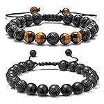 ❤️MATERIAL: Natural black lava rock stone, Tiger Eye and black matte agate bead, come with a easy to store flannelette gift bag. Natural stone bead possess low density and light weight. Its cool feeling in hands can make the anxiety calm down.