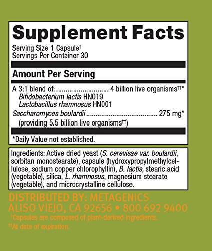 Features a probiotic blend of B. lactis HN019, L. rhamnosus HN001, and S. boulardii