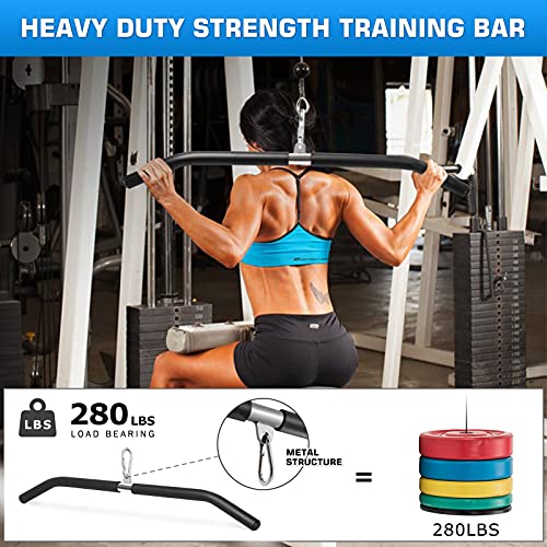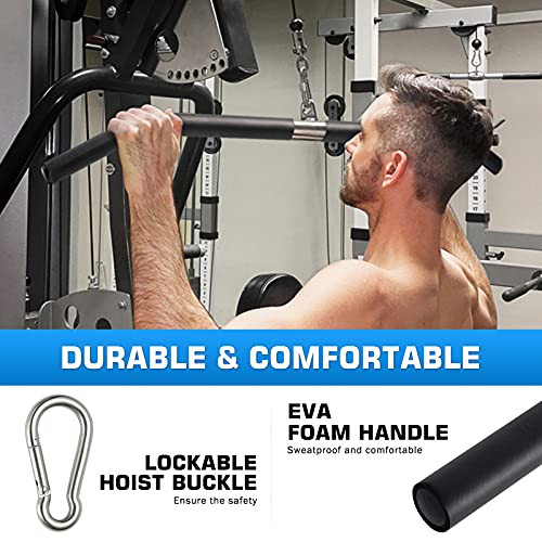 【Multi-compatibility】 this 33.5” LAT bar can be connected to a cable machine, landmine attachment, Mikolo pulley system set 2.0 (B08BNJT4C3) and etc, to perform high-position pull-down actions. Exercise your back, Arm, and waist muscles.