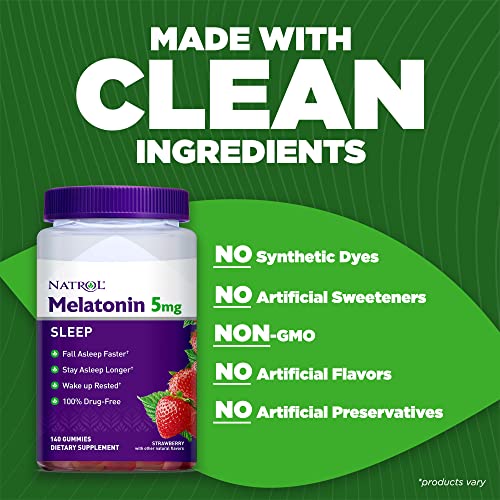 Clean Ingredients: Natrol Melatonin Gummies are 100% Drug-Free, non-GMO, gluten-free, vegetarian and contain no corn syrup. Free of artificial flavors, sweeteners and preservatives, and synthetic dyes.