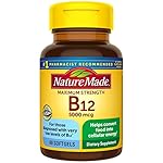 Nature Made Maximum Strength Vitamin B12 provides 5000 mcg of Vitamin B12, which helps break down food into energy that your body can use all day long. This gluten free B12 supplement has no artificial flavors, no synthetic dyes, and no preservatives. Nature Made B12 5000 mcg is a dietary supplement that also offers nervous system support and energy metabolism support(1). B12 vitamins are important for vegetarians and vegans who may not consume enough from their diet alone. These Maximum Strength Nature Made B12 Softgels help restore healthy levels of B12 in adults diagnosed with very low levels of B12(2). Adults, use only as directed by a physician and take one of these Vitamin B12 softgels daily with water and a meal. Nature Made supplements are quality you can trust. USP has tested and verified ingredients, potency and manufacturing process. USP sets official standards for dietary supplements. Visit the USP verified website for more information. (1)Helps convert food into cellular energy. (2)For adults with very low levels, as diagnosed by their physician using appropriate biomarkers. *Based on a survey of pharmacists who recommend branded vitamins and supplements.
