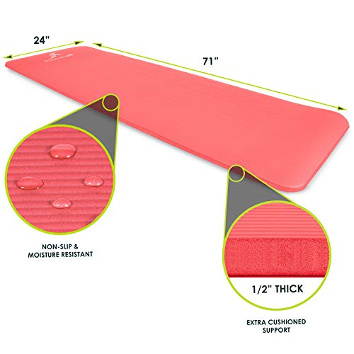 VERSATILE – Ideal for many fitness purposes, such as Pilates & yoga, the extra-large 71- by 24-inch and 1-inch thick mat fits any user