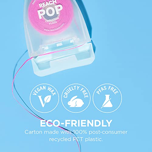 Reach POP Dental Floss is sustainable & eco-friendly using Post-Consumer Recycled(PCR) plastic for the container and Recyclable Plastic for the dispenser.