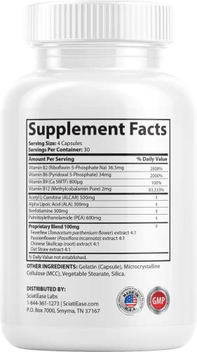 Unmatched PEA Formula: SciatiEase comprises a powerful 12-ingredient proprietary formula utilizing some of the most unique compounds for neuropathic discomfort. The groundbreaking palmitoylethanolamide (PEA) is optimized by alpha lipoic acid, acetyl L-carnitine, and benfotiamine 300mg. Plus, B vitamin complex and premium herbal blend forge an unparalleled formulation versus many PEA supplements.