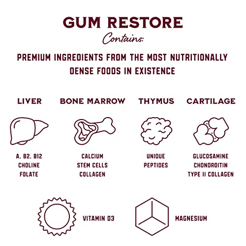 Gum Restore works to support receding and bleeding gums by targeting specific fat-soluble vitamin activators and living collagen that are left out of the modern diet. Gum Restore addresses the root causes of gingivitis and periodontal issues by supplementing your diet with ancestral whole foods rich in calcium, collagen, and fat-soluble vitamin activators.