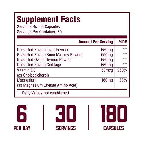 Liver is nature’s multivitamin and contains vitamin A, B12, choline, folate, riboflavin, CoQ10 and many other powerful nutrients. Thymus contains unique peptides to regulate, strengthen and support immune health, and balance inflammatory response.