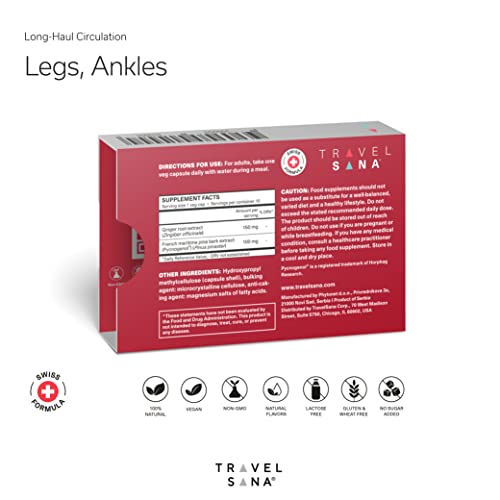 TRAVELSANA Long-Haul Circulation – Reduces Swollen Legs and Ankles – Natural Supplement with French Maritime Pine Bark (Pycnogenol 100mg) and Ginger Root Extracts – Fast-Acting – 10 Single Servings