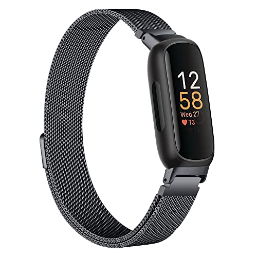 Wongeto for Fitbit Inspire 3 Bands Women Men, Stainless Steel Metal Mesh Loop Adjustable Magnetic Wristband Replacement Strap for Fitbit Inspire 3 Fitness Tracker