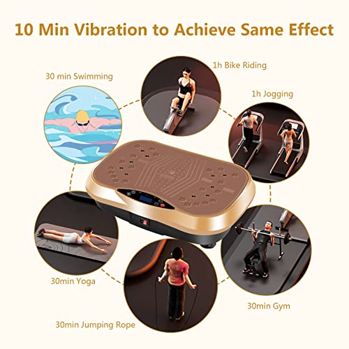 【GET THE PERFECT SHAPE】 Use the YOKELE vibrating exercise machine to build your dream body. Strong vibration melts away body fat in leg, hips, waist and arms while improves the production of collagen. The body vibration machine creates full-body vibrations for muscle contraction and activation, burning calories. It helps your body process fat faster than running.