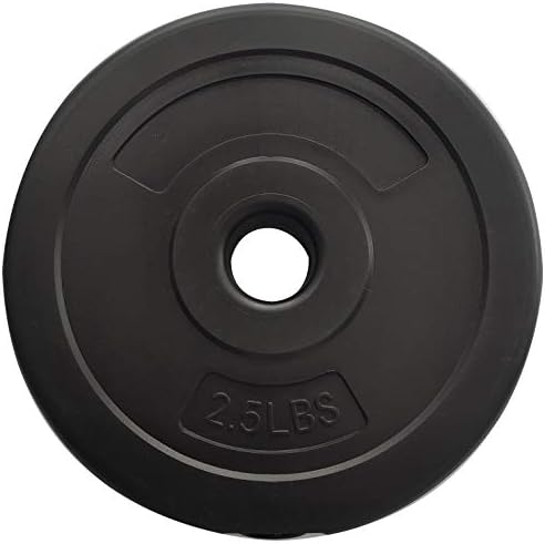 What’s included: 4x 2.5 lbs and 4x 7.5 lbs vinyl cement plates, 2x 14″ dumbbell handles and 4 collar locks