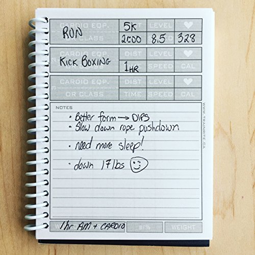 Compact, durable coil bound journal with waterproof covers (4.5 x 5.5”)90 workouts worth of weight lifting PLUS cardio loggingEach workout tracks 10 exercises per workout, and 3 cardioUp to 5 sets per exercise with variable weightRotating 2–week workout schedule chart allows you to plan your schedule far in advanceSpace for notes