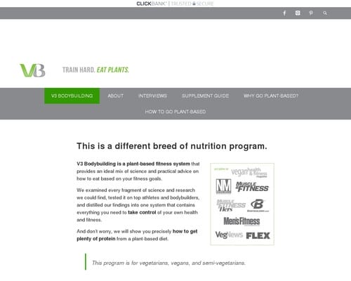 V3 Bodybuilding is a plant-based fitness system that provides an ideal mix of science and practical advice on how to eat based on your fitness goals.