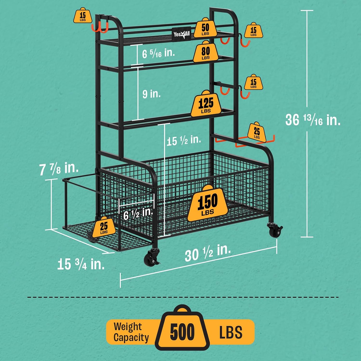 🏋️♂️【High Capacity of 500 Pounds】Solid steel construction with basket design allows this weight organizer for home gym withstand up to 500 pounds; The high quality powder coating protects this gym storage rack from rust and scratches
